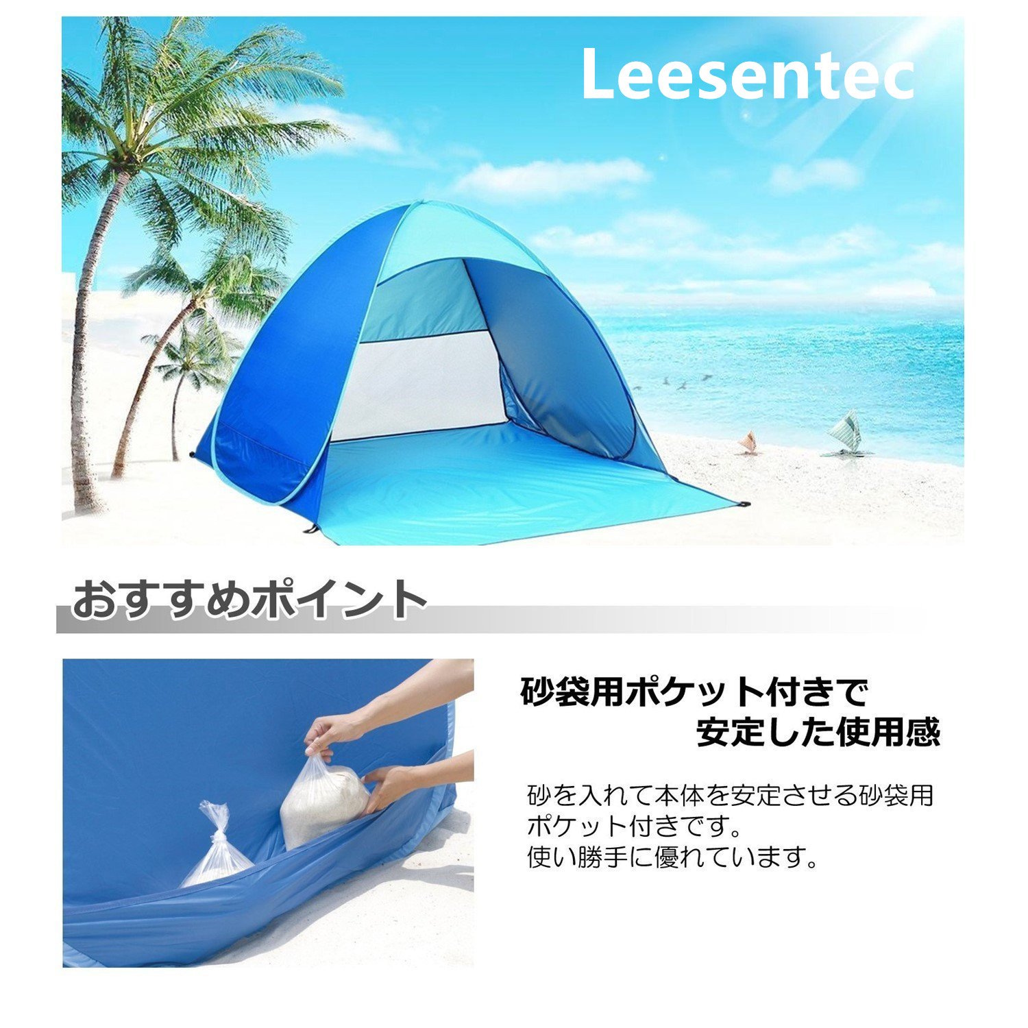 Leesentec サンシェードテント ワンタツチ簡易テント2-3人用テントSPF+50海水浴 砂浜 公園 遠足 ビーチ 最適